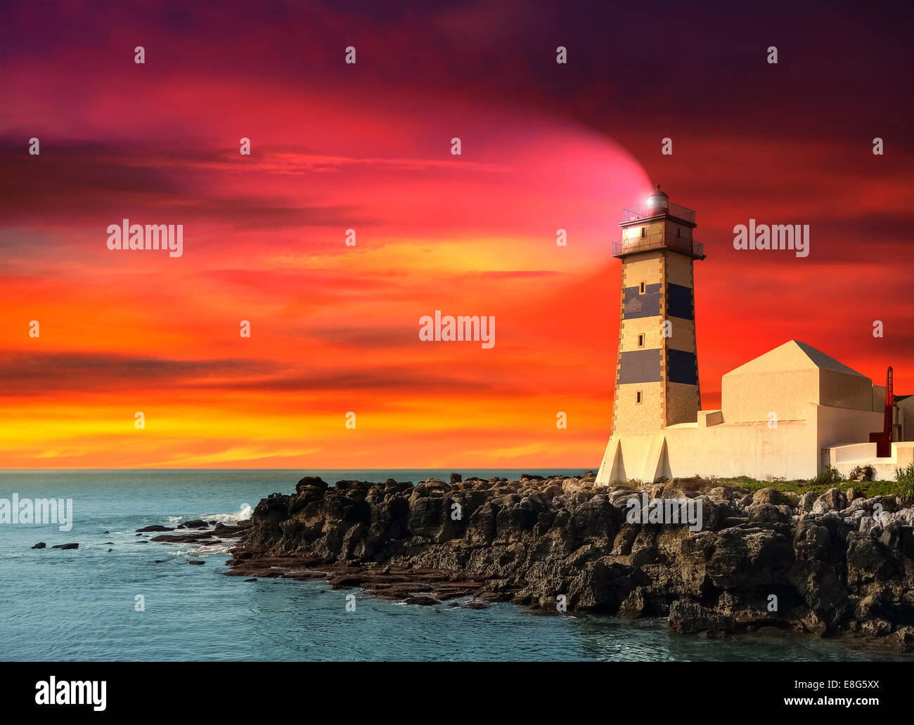Lighthouse at sunset purple seascape Stock Photo 74114626 Alamy